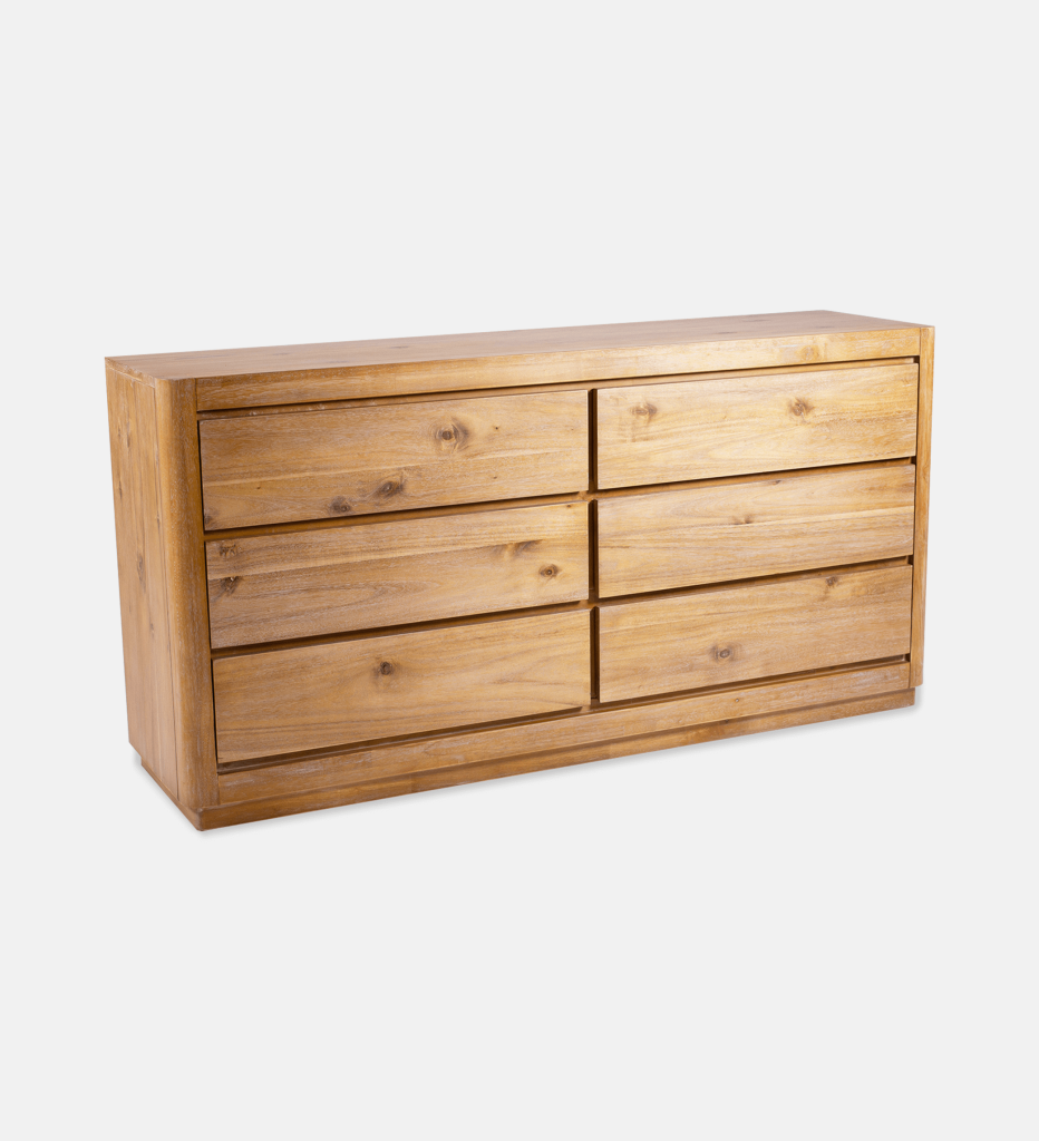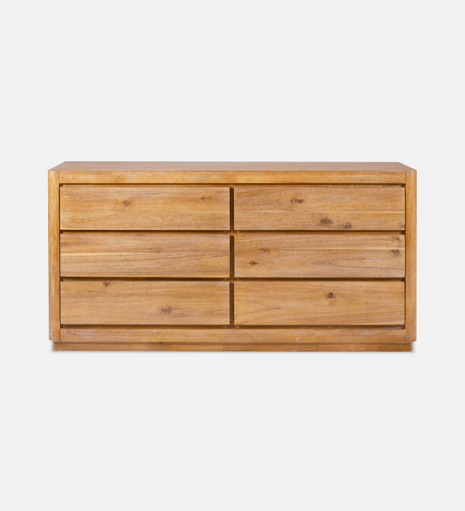The Bogard Dresser is defined by its clean lines and contemporary look and feel, making it the perfect edition to a modern bedroom. Custom made from Rubber and Acacia wood and featuring 6 drawers with ample space, making it a functional and beautiful piece.