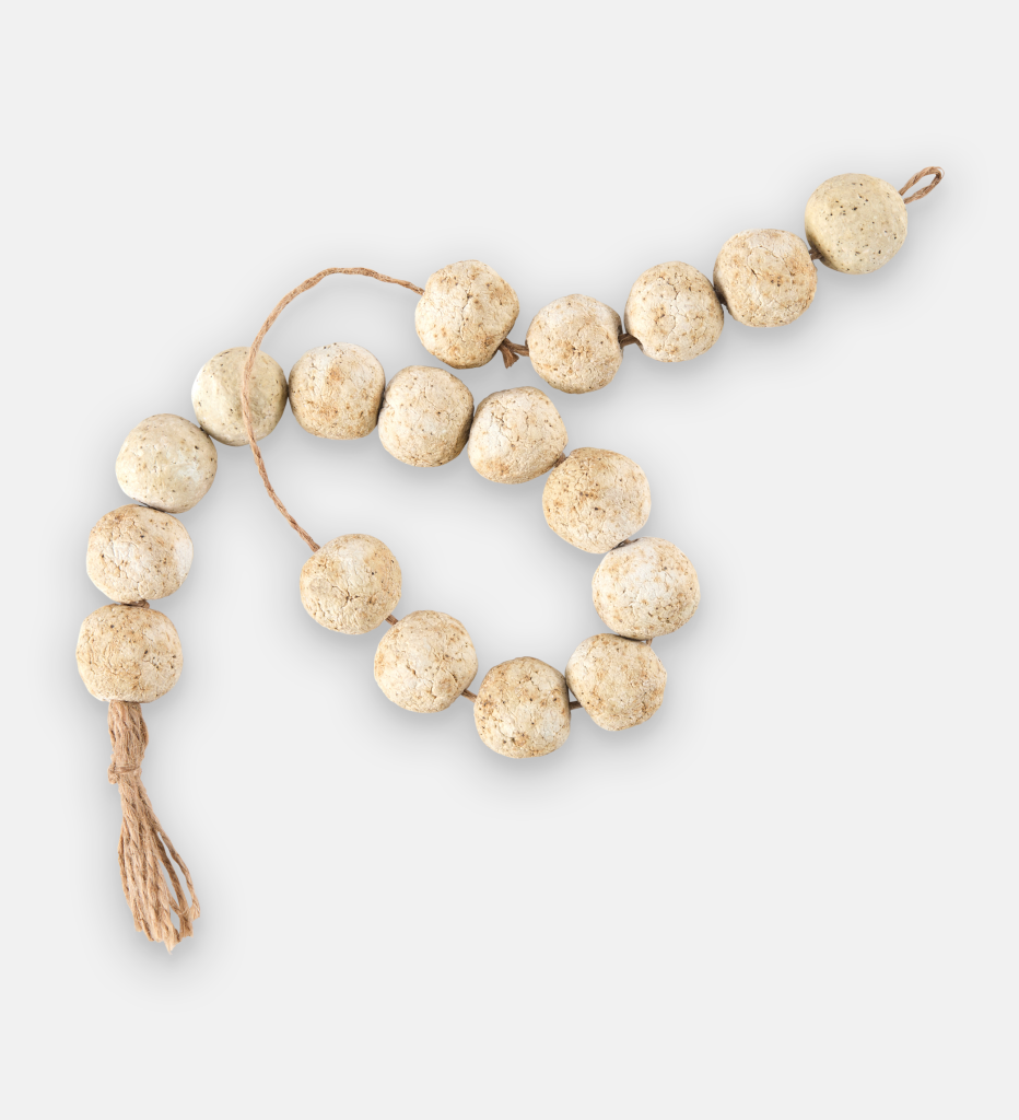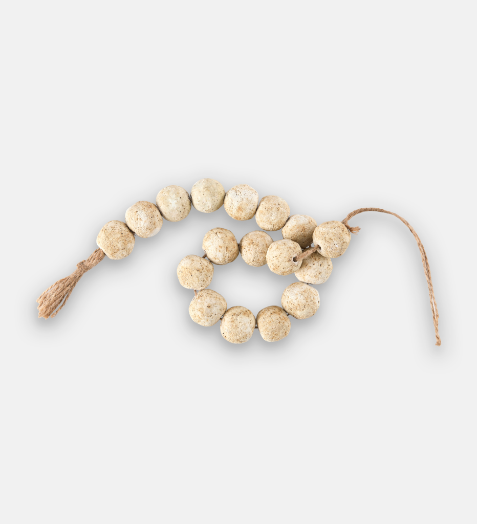 Add a touch of artisanal charm to your home with our handmade wooden bead garland. Expertly crafted from high-quality natural wood and strung on durable jute twine, this versatile decor piece brings rustic elegance to any space. Whether draped over mantels, styled around vases, or used as a centerpiece, it’s the perfect accent for modern, boho, or farmhouse interiors.