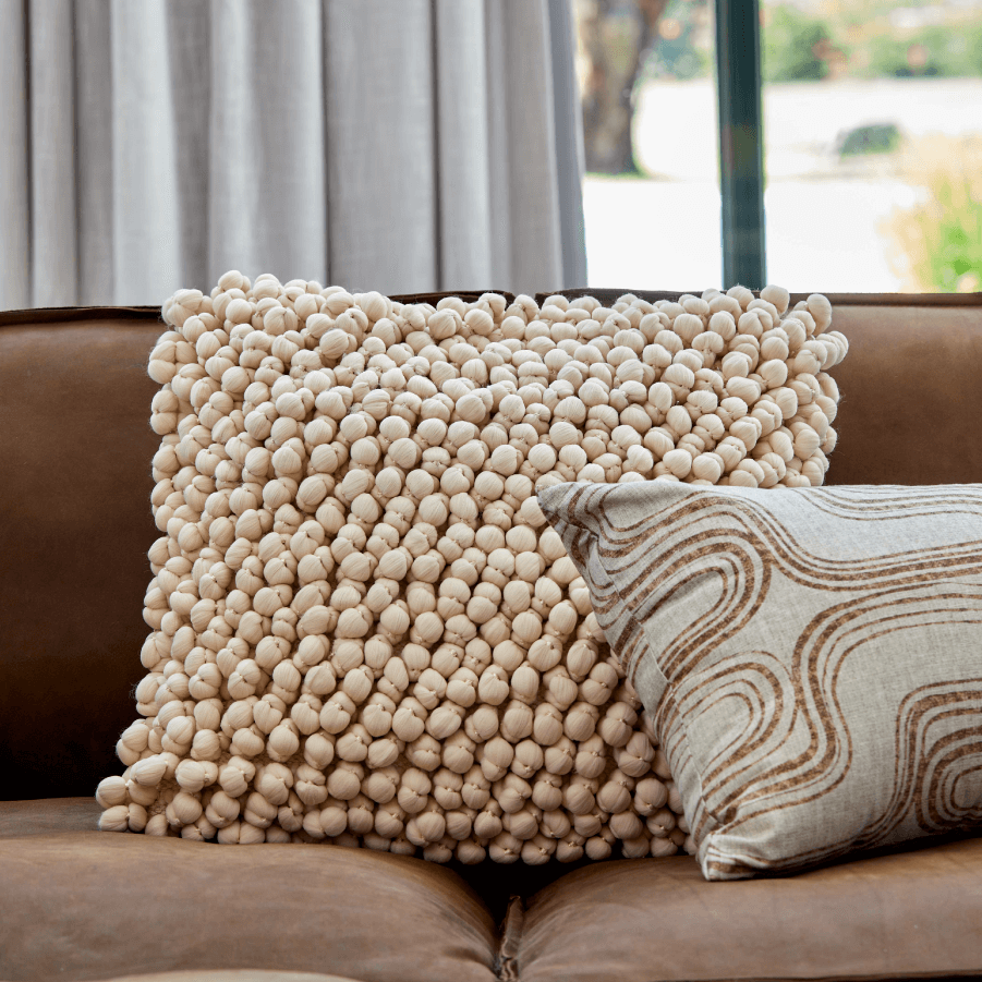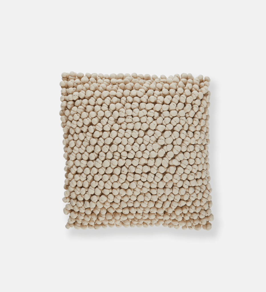 Available in a muted hue, the Bulbs scatter cushion is far from boring. Pair it with solids or pattern for an eclectic look.