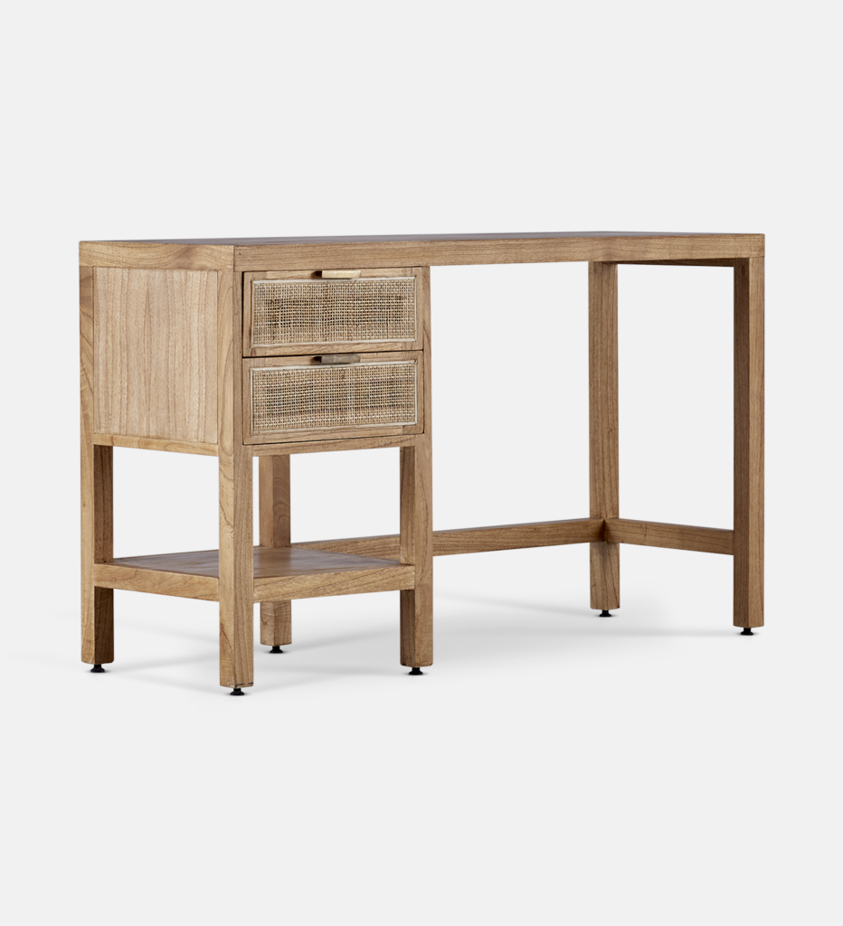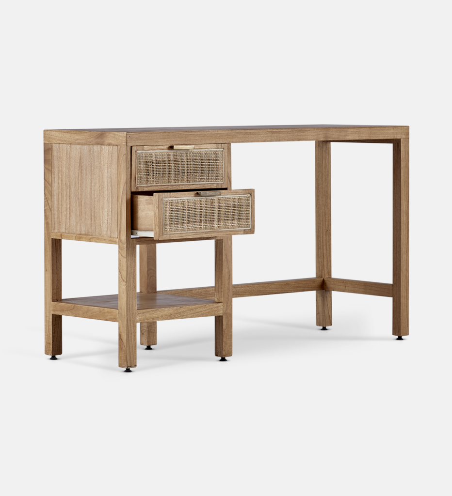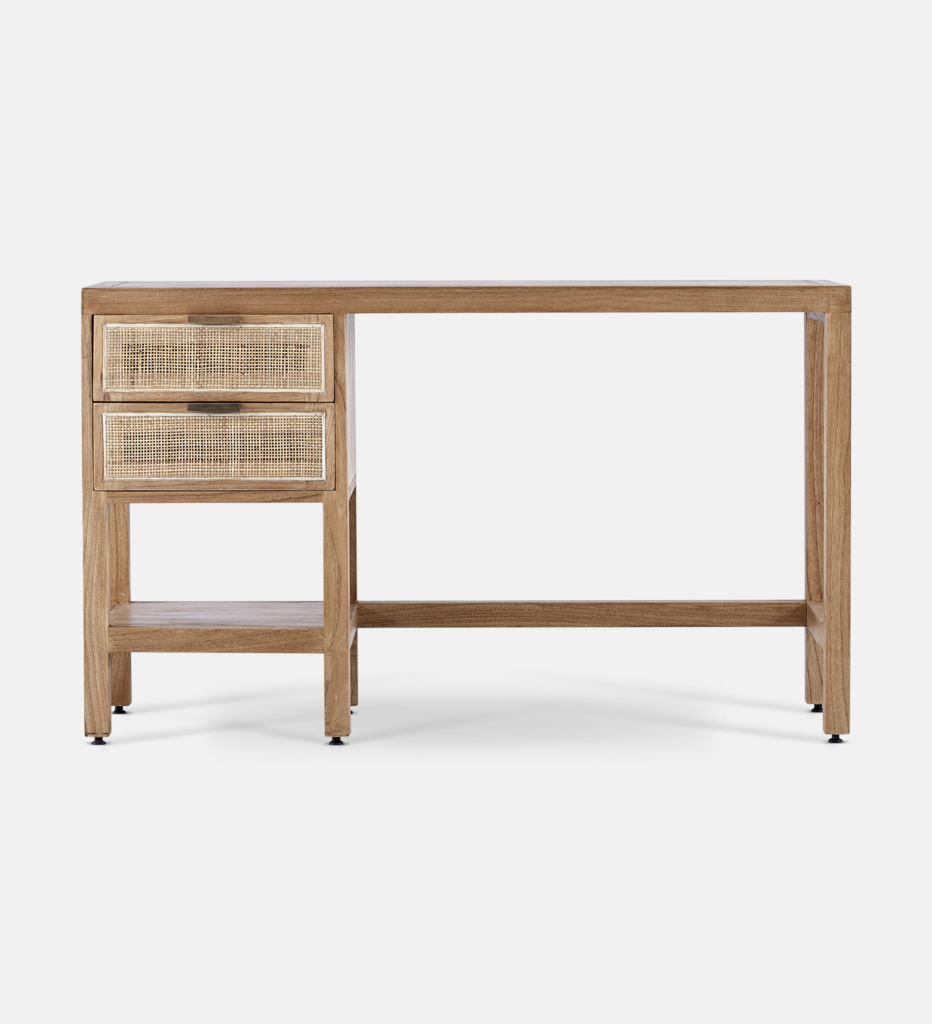 The Geneva collection is soft, elegant, and earthy. It carefully balances warm woody tones with a delicate rattan texture for a versatile look. The stylish Geneva desk is versatile and can be used as a desk in your office, an entrance table, or a dressing table in your bedroom.