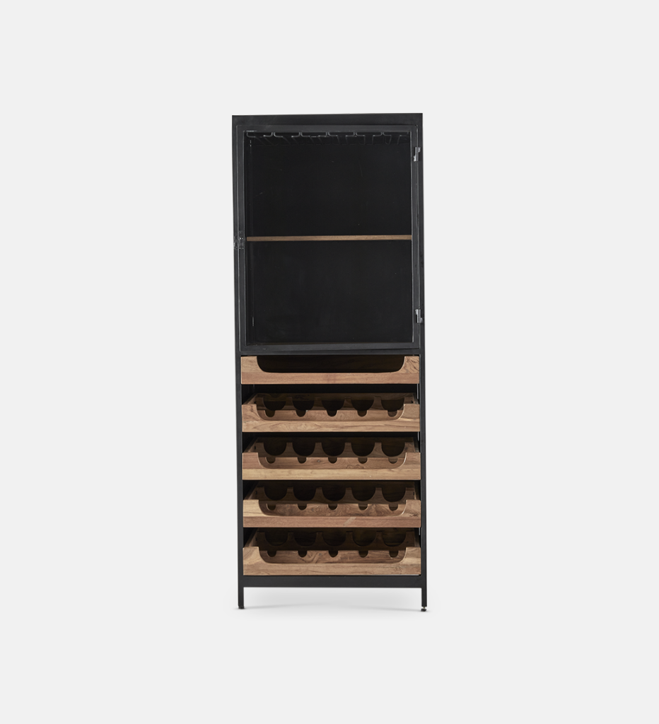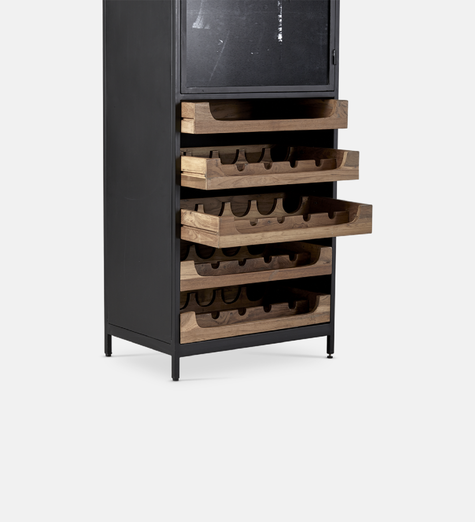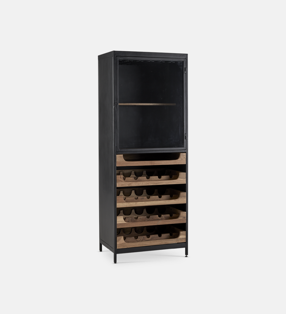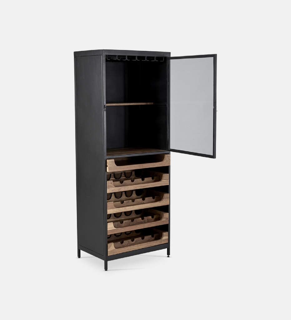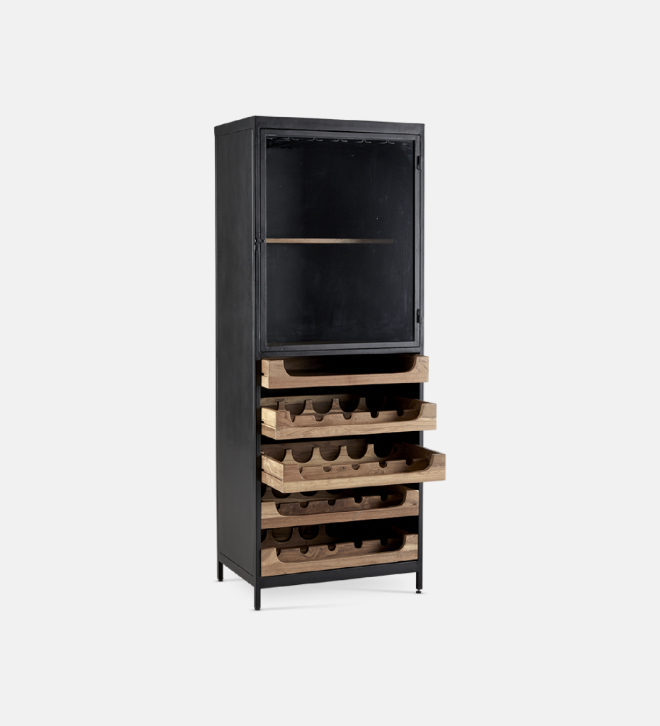 The Gia drinks cabinet marries display with utility. With a metal framed glass door and wooden drawers for bottle storage, everything you need to entertain is simply an arm’s length away.