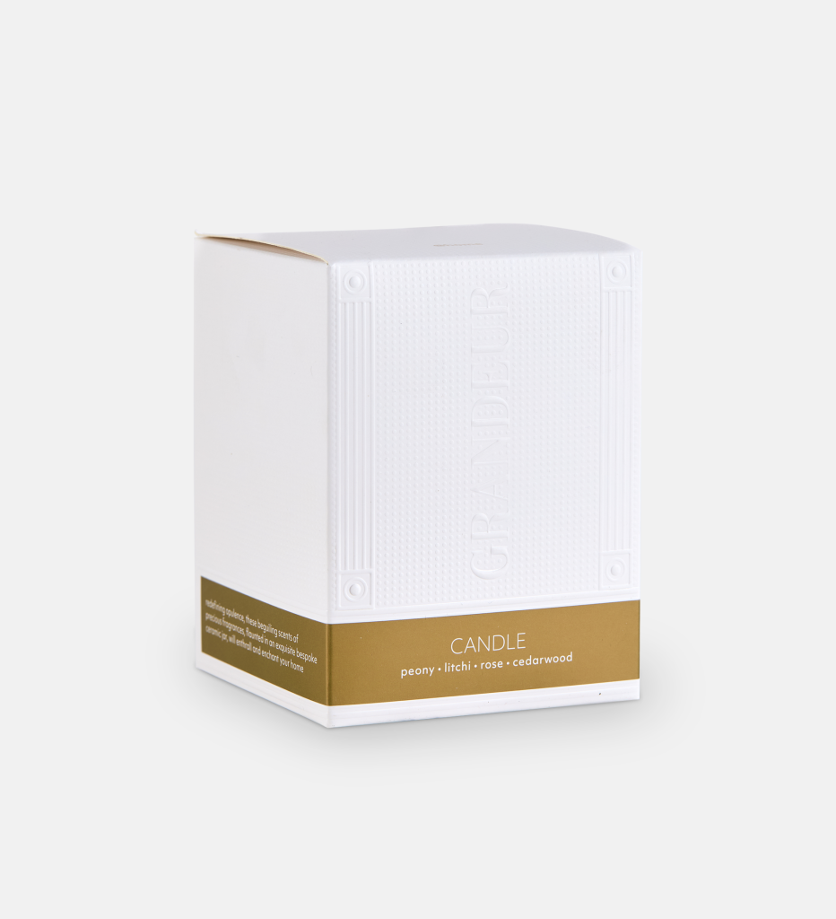Immerse your space in refined tranquility with our premium wax candle, expertly blended with notes of peony, litchi, rose, and cedarwood. Designed for a clean, even burn and long-lasting fragrance, this artisanal candle is a statement of sophistication. Housed in an embossed, high-end box, it’s the perfect addition to any luxury home décor or a thoughtful gift for discerning tastes. Redefine your ambiance with our signature homeware collection.