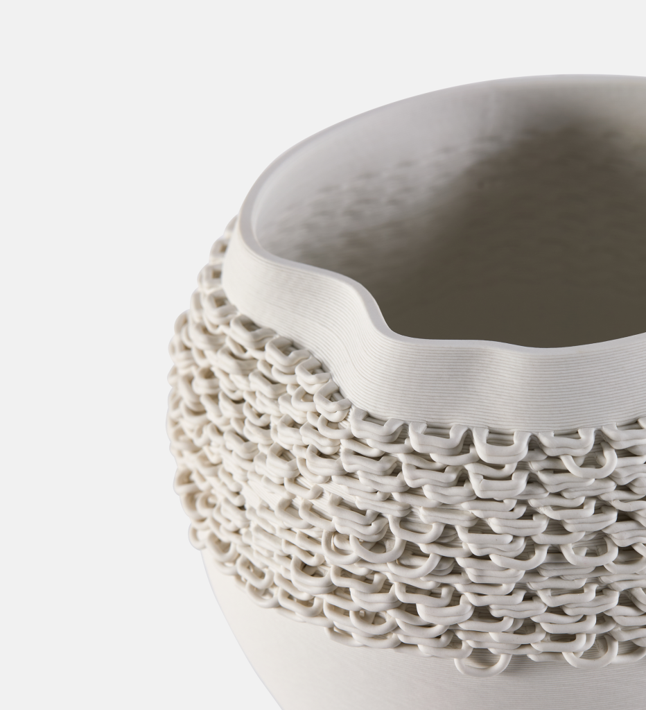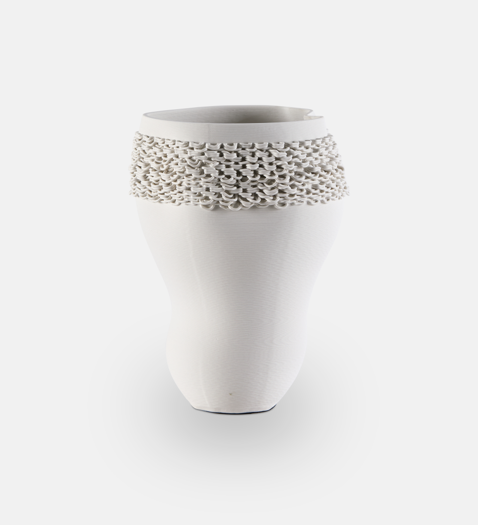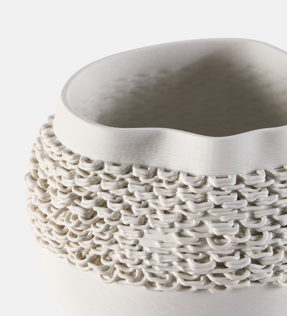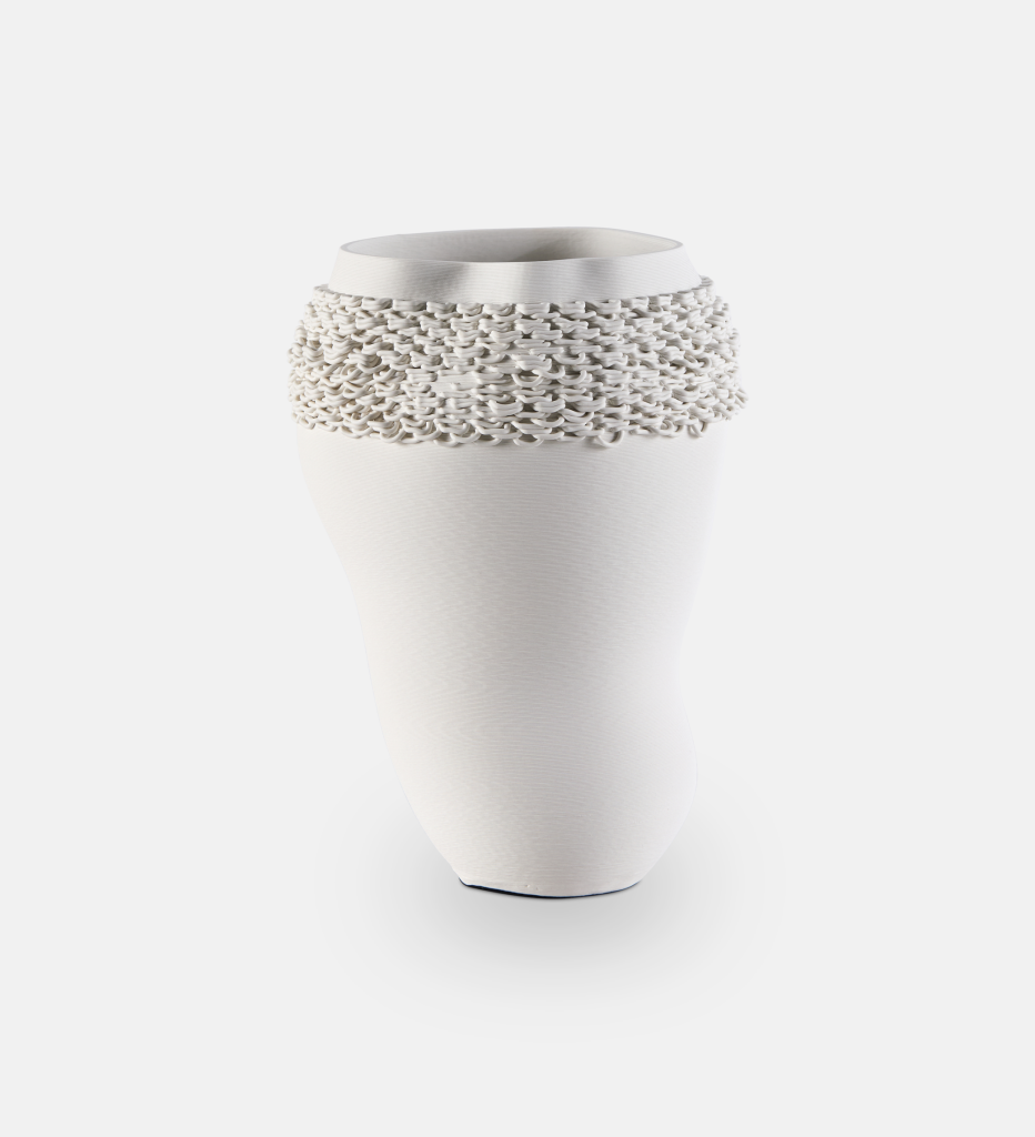 Expertly handcrafted from premium porcelain, this designer vase features an intricately textured upper design that catches the light with every angle, contrasted by a smooth, refined base that grounds the piece in contemporary sophistication. Whether styled with fresh florals or showcased as a standalone decorative object, it brings sculptural beauty and artisanal craftsmanship to any interior—perfect for those curating a space with luxury home décor and distinctive design.
