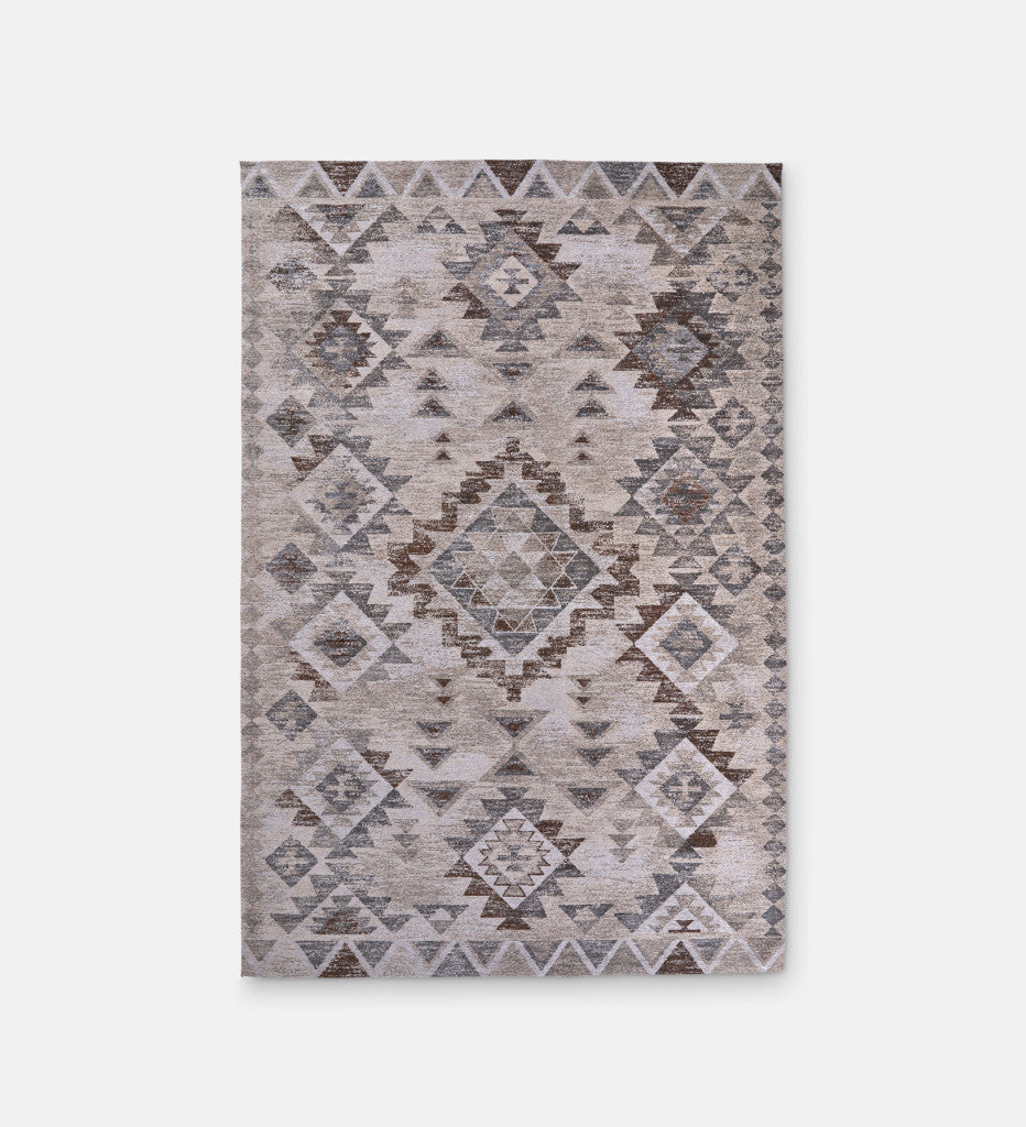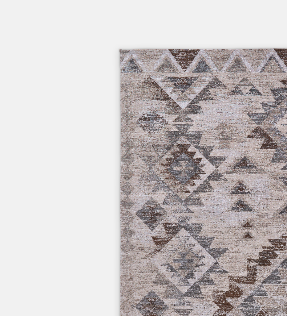 Machine woven from 100% polyester chenille, the Neva rug is luxuriously soft underfoot. Featuring a range of tonal neutral shades, the geometric patterning has a slightly distressed look to give it a vintage feel.