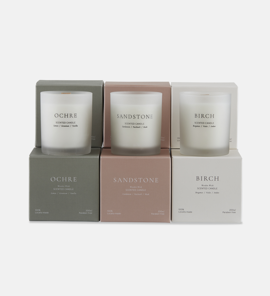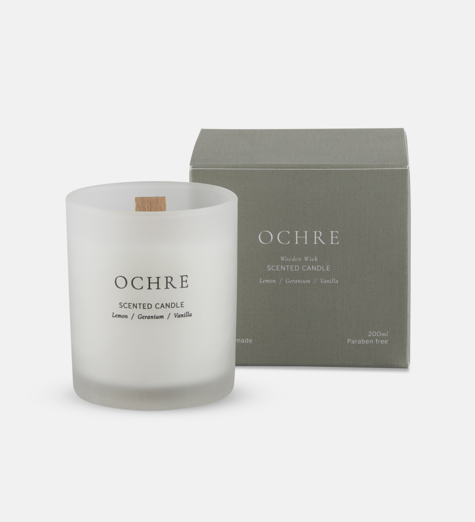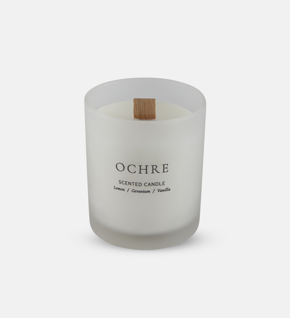 Welcome our first range of Coricraft candles and indulge in an alchemy of scents. Fill any space with the full-bodied woody fragrances of Ochre, Sandstone, and Birch and transform your home into a comforting oasis. With a wooden wick, this locally-made candle burns brighter for longer. The Ochre candle has notes of lemon, geranium, and vanilla for a sweet and earthy fragrance.