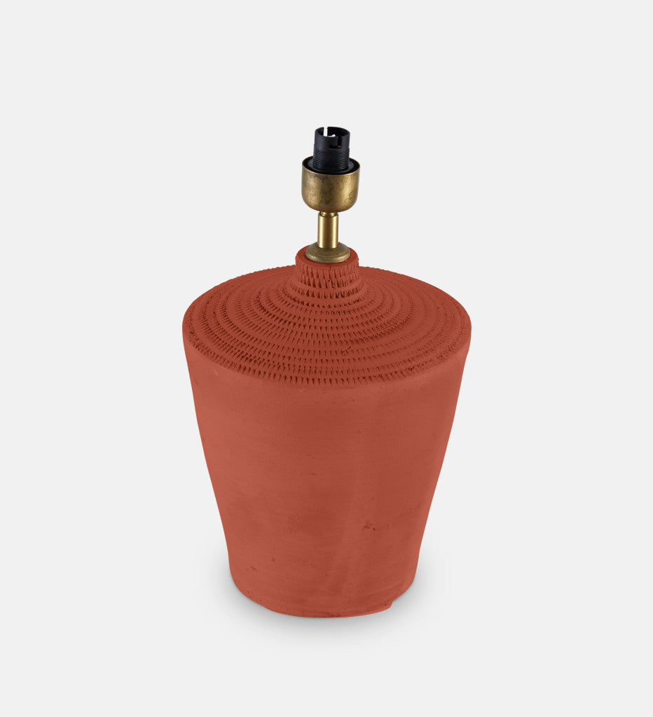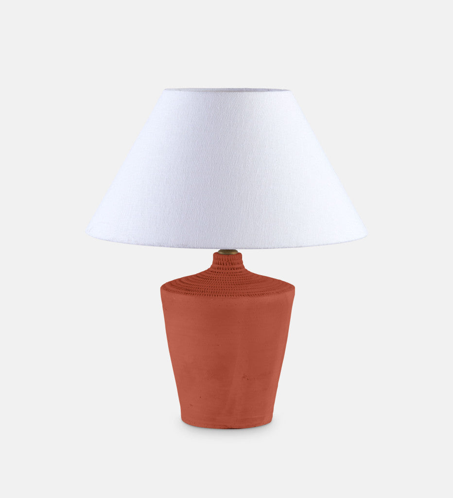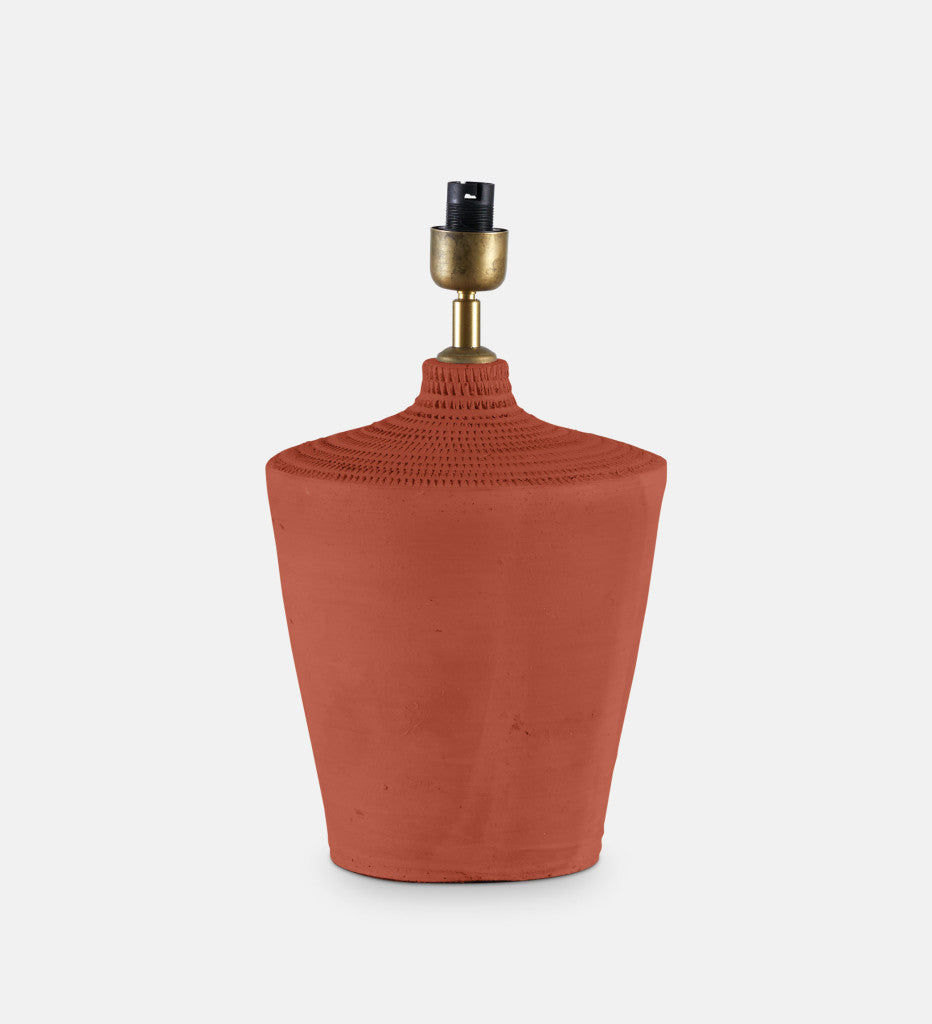 One of the first in our new range of ceramic lamps, the Raya table lamp boasts an organic elegance. Handcrafted from exquisite clay with a rich rust colour, this lamp exudes a tactile charm that adds character to any space.