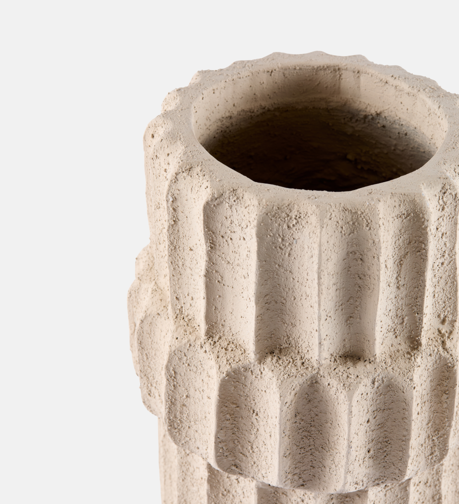 Elevate your space with the urban chic appeal of the Sofia Vase. Whether used as a standalone decor piece or paired with other accessories, this vase adds a touch of contemporary flair and undeniable style to any setting. Make a statement in your home with this striking piece of functional art.