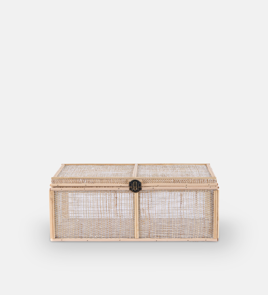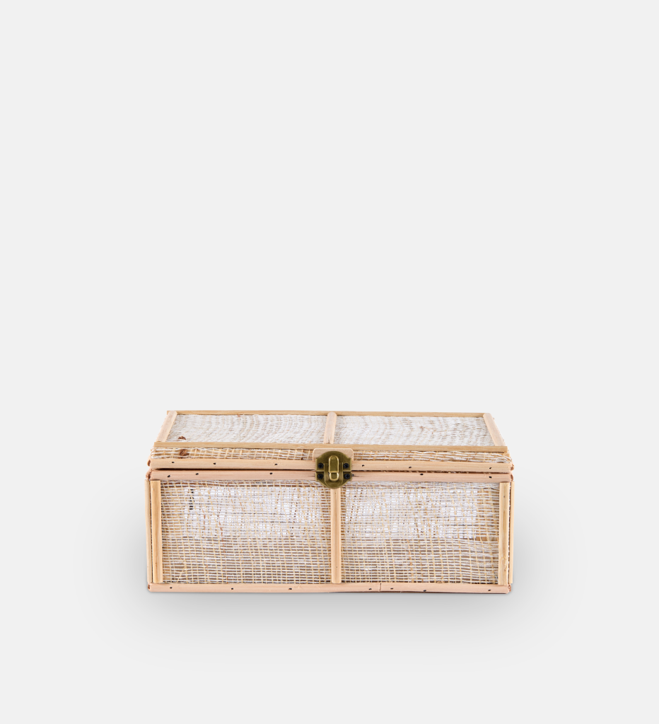 The Sonnie Storage Box construction exudes rustic charm and artisanal appeal, adding texture and warmth to any room. Its earthy tones and organic texture evoke a sense of coastal relaxation, bringing a touch of seaside serenity to your living space.
