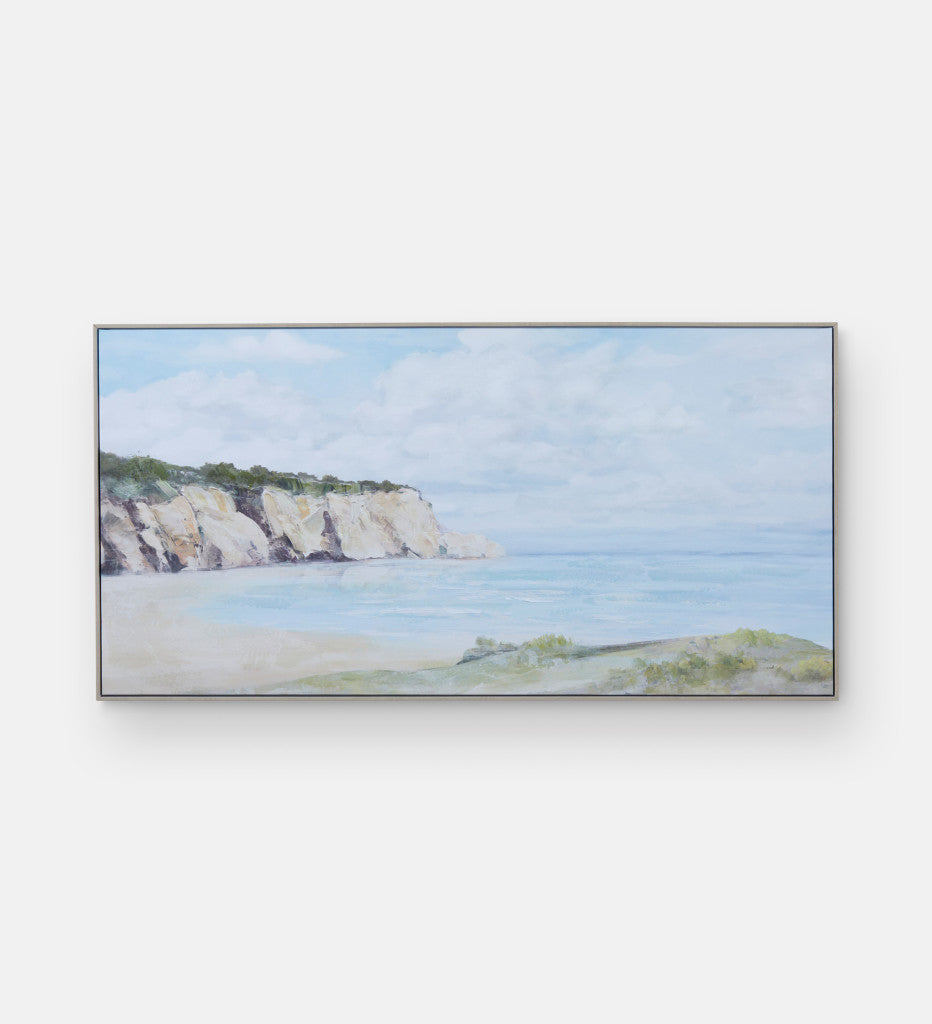 Reminiscent of beautiful coastal views, this hand-painted artwork brings the vast expanses of South Africa into your home. With a Timber frame, this piece works beautifully when leaned against a wall, as part of a gallery wall display, or as a standalone feature on your wall.
